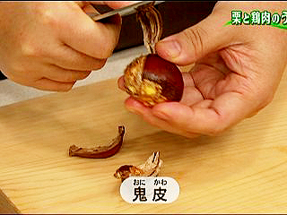 栗を熱湯に10分つけて熱いうちに皮をむくのがポイント(10分以上熱湯につけると栗が割れてしまうので注意)。