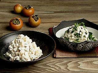 柿の白あえ衣はなめらかになるように、フードカッターにかけます(または裏ごし)。