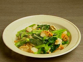 小松菜と蒸し帆立のスープ炒め