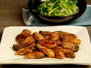 下味をしたかきは片栗粉を厚めにまぶしておくこと。