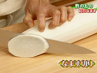 大根は真ん中から先端の部分がやわらかく、なます向き。