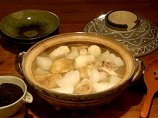 鶏肉はだしの出る骨つきを求め、必ず血合いや小骨を洗い流しておくこと(澄んだスープに)。