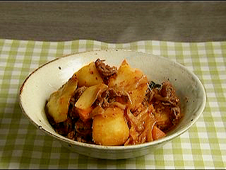だし汁を加えず、牛肉のうま味をじゃが芋に吸わせます。