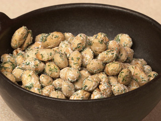 炒り大豆のおやつは、表面の砂糖が白くなるまで混ぜ続けるのがポイント。