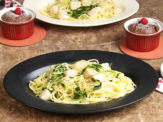 根三つ葉はパスタと一緒にゆでて、香りを移します。
