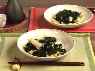 わかめあんの調味は、蒸し汁を利用するので、必ず味見をして塩の分量を加減します。