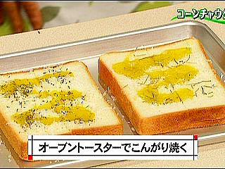 材料: 食パン・・・(6枚切り)2枚 パルメザンチーズ(おろす)・・・適量 オリーブ油・・・少々 ドライハーブ(タイム、ローズマリー)・・・適量 作り方 (1)食パンは半分に切り、チーズをふりドライハーブをぞれぞれ散らし、オリーブ油をかける。 (2)オーブントースターでカリっとするまで焼く。