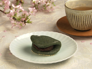 早春のやわらかい葉を摘み、ゆでて乾燥させ、粉末にしたもの。湯でふやかしてから生地に混ぜ込む。