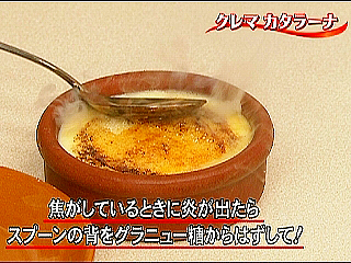 グラニュー糖を焦がしたときに炎が上がったら、スプーンをはずすこと。