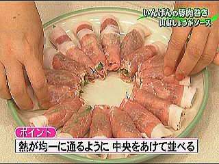 中心は熱の通りが悪いのでのせないこと、放射状に並べる!