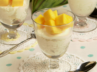 ▲食べるときは、レアチーズとマンゴーを混ぜ合わせて一緒にどうぞ。