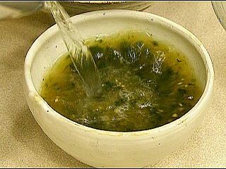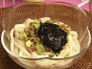 火を使いたくないときには、冷凍うどんは流水で解凍してもよい。流水をかけて皿にのせ、しばらくおいてほぐれてきたら、再度流水で洗ってザルに上げ、水気をきる。