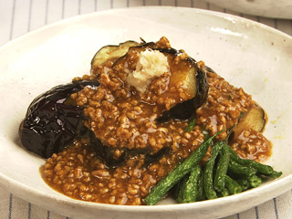 なすは高温でカリっと、切り口がこんがりするまで揚げます。