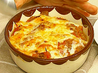 焼いたなすにソースをかけ、チーズをかけて焼く、「グラタン」に