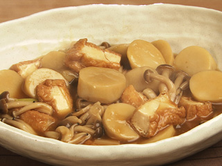 油揚げは沸騰湯にくぐらせて油抜きをします。