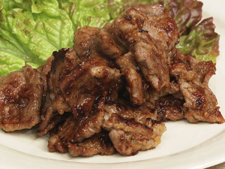 材料:4人分 ラム肉(焼肉用)・・・300g クミンパウダー・・・小さじ1/4 おろし玉ねぎ・・・1/2個分 おろしにんにく・・・1かけ分 しょうゆ、砂糖・・・各大さじ1+1/2 粗びき黒こしょう・・・少々 サニーレタス・・・適量 ・油 作り方 (1)ラム肉に玉ねぎ、にんにく、調味料をもみ込み、15分ほどおいて味をなじませる。 (2)フライパンに油大さじ1/2を熱して、(1)を焼く。 (3)器に盛り、レタスを添える。