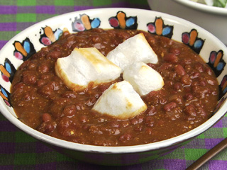 このカレー、元々はこのインドの黒い豆、ウダド豆で作るもの。今日はあずきで代用します。