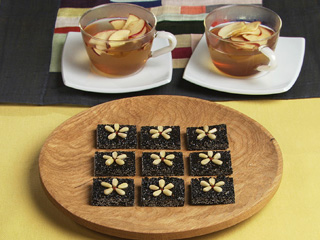 干したりんごにレモン汁ときび砂糖をまぶして2~3時間おいたもの。りんごから水分がしみ出してシロップに。