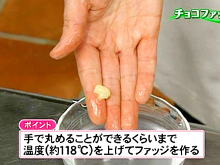 大事なのは温度118℃、これが理想の固さになるポイント(ファッジのモト)です。