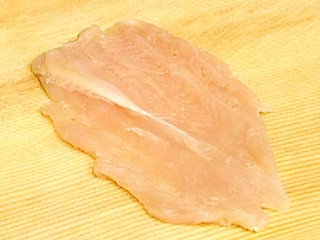 (1)ささ身の厚みは均一に!薄く透けてしまった部分は肉でつぎ当てを!