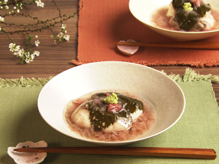 桜あんの桜の花は分量の水に漬けて、香りを移しましょう。