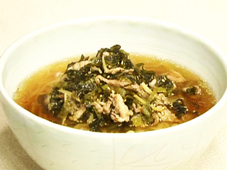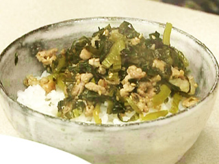 高菜はごま油でよく炒めて発酵臭をとばします。