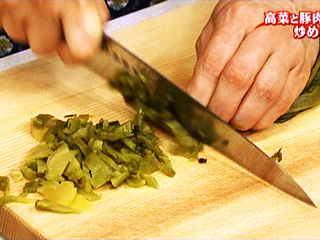 高菜の葉はとても幅広なので、食べ易いように縦横に刻む。