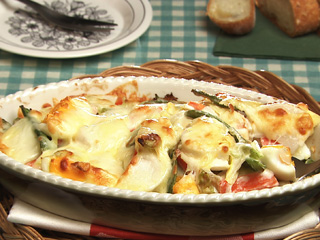 野菜はレンジ加熱をしてから、マヨネーズとあえておくのが焼き時間短縮のポイント。