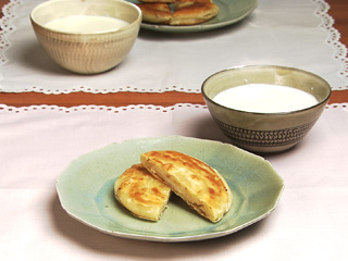 このねぎもち朝食に、おやつにおすすめ、豆乳といっしょに食べるのがおすすめ。