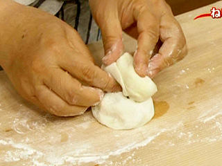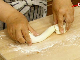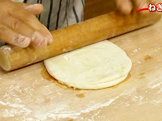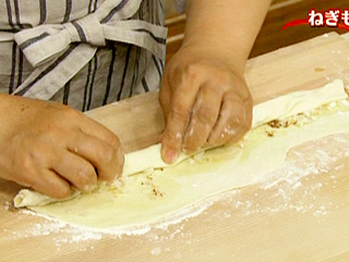 (1)4等分した生地をめん棒で15×30cmにのばす。
