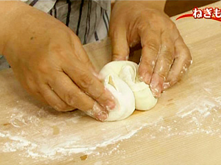 (2)ごま油を全体にぬり広げ、花椒塩とねぎをふる。