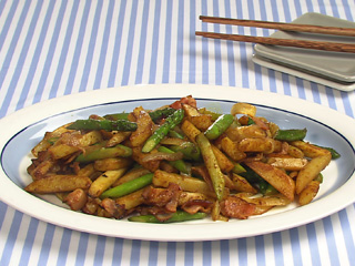じゃが芋、玉ねぎ、アスパラの炒めもの