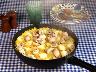サフランの色が明るさのキメ役なので、 早めに湯につけて色出ししておきましょう。