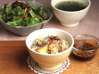 牛肉のうま味が染み込むようにじゃが芋の上にせて炊くこと。