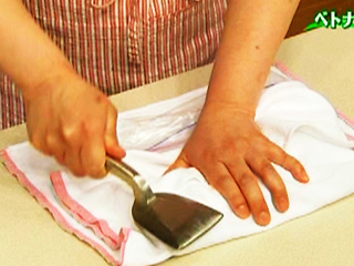 氷を厚手の袋に入れて、必ずふきんやタオルで包んで上から砕きます。 冷たさもごちそうです!