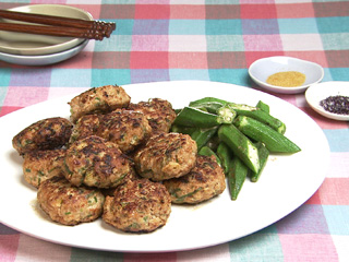 ひき肉は冷たい状態のものに調味料を加え、粘りが出るまでよく混ぜること(繊維をつなぐ)。
