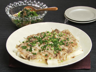 豚肉に梅肉とわさびをもみ込むのが味のポイントです。