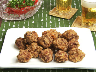 揚げ時間は4~5分、中心まで火を通すこと(揚げ上がり少しおいて、余熱で火を通す)。