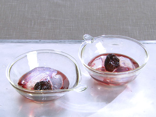 ▲やわらか寒天は通常の4倍の水分量。切り分けられないのでスプーンでとり分ける。