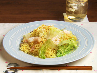 中華めんは温めたりせず、直に入れてほぐしながら炒めます。