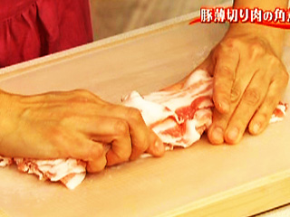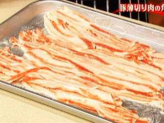 (1)まず、肉をバットなどに広げてノリ(酒、しょうが汁、片栗粉を合わせた)を全面にまぶす。