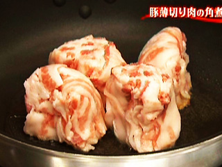 重ねた肉は切った断面から焼いて、全面こんがりと焼きつけます。