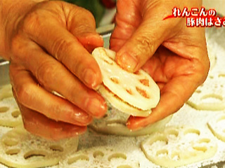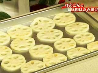 (1)れんこんは大きさが同じものを隣同士にして並べておく。