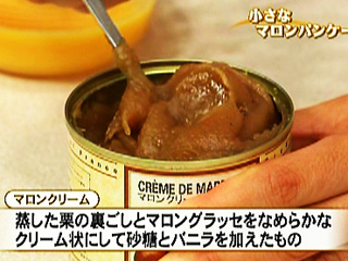 蒸した栗の裏ごしとマロングラッセをなめらかなクリーム状にし、砂糖とバニラを加えて混ぜた製菓材料。
