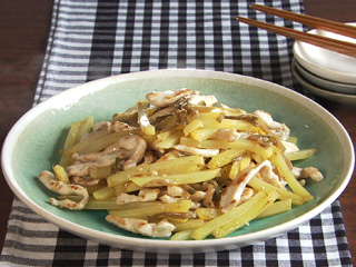 鶏肉、じゃが芋、ザーサイの塩炒め