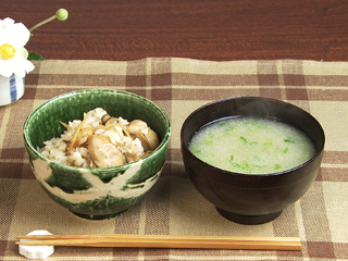 炊き上がりにかきを加えて、2~3分蒸らすとよい。