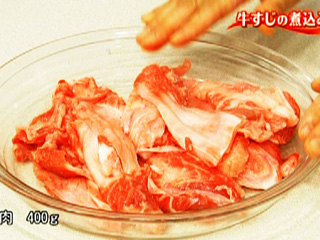牛すじが充分にやわらかくなるまで煮てから、具と調味料を順に加えること。