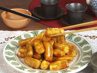 熱いあめは水にとり、表面をパリっとさせてからいただきます。