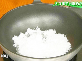 (1)あめ作り。熱したフライパンに砂糖を加えたら、木べらなどで混ぜないこと(砂糖が溶けなくなる)。