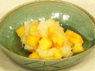 材料:4人分 柿・・・1個(200g) 大根おろし・・・500g 甘酢(酢大さじ1、塩小さじ1/3、砂糖少々、しょうゆ小さじ1/2) 作り方 (1)柿は角切りにしておく。 (2)甘酢の調味料を混ぜ、大根おろしに加える。 (3)柿を加えてあえ、器に盛る。